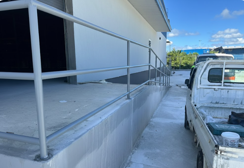 Ok, ThanksSupply, fabricate and installation of railing, wall grabrails and panel mesh on the following location comprising of galvanized pipe, wall bracket plate and miscellaneous accessories (screws, etc.)